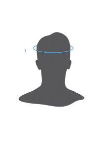 1. CABEZA: Rodea tu cabeza con una cinta métrica flexible a la altura de las sienes, justo por encima de las cejas. Usa esa medida para determinar tu talla de gorra.Etiqueta | 1. CABEZA |